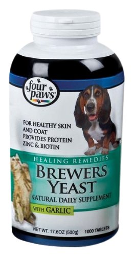 - Four Paws Brewers Yeast contains an excellent source of vitamins, minerals and natural proteins to promote healthy coats and control shedding.